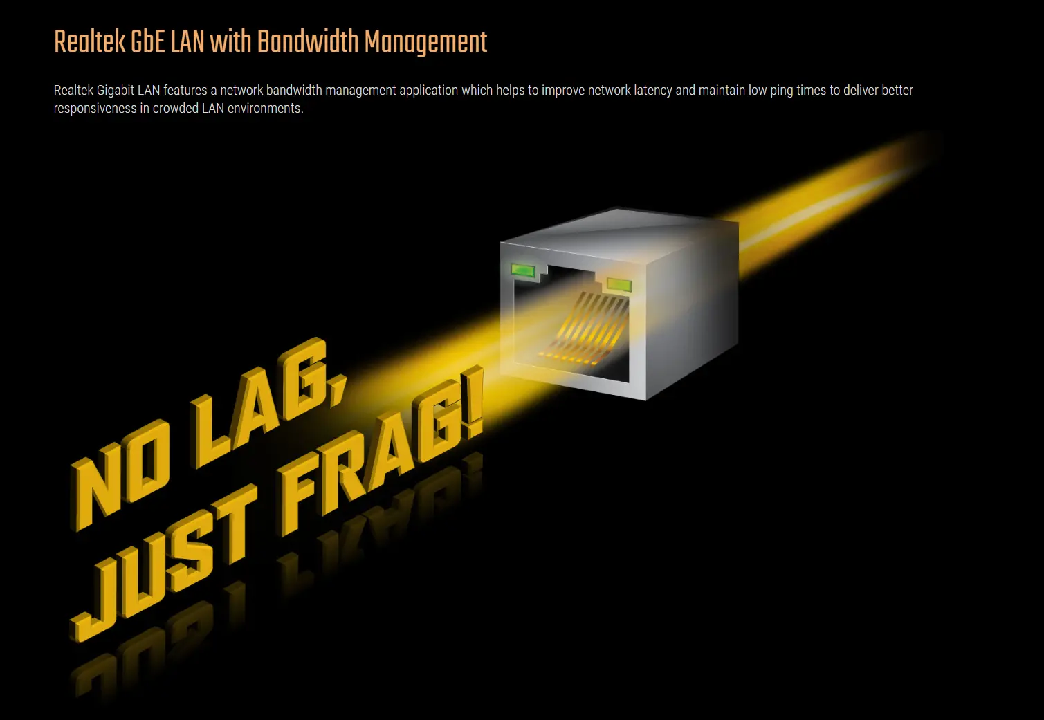 Realtek GbE LAN với khả năng quản lý băng thông giúp ổn định kết nối mạng, đảm bảo bạn luôn có trải nghiệm mượt mà khi chơi game trực tuyến hay làm việc từ xa.