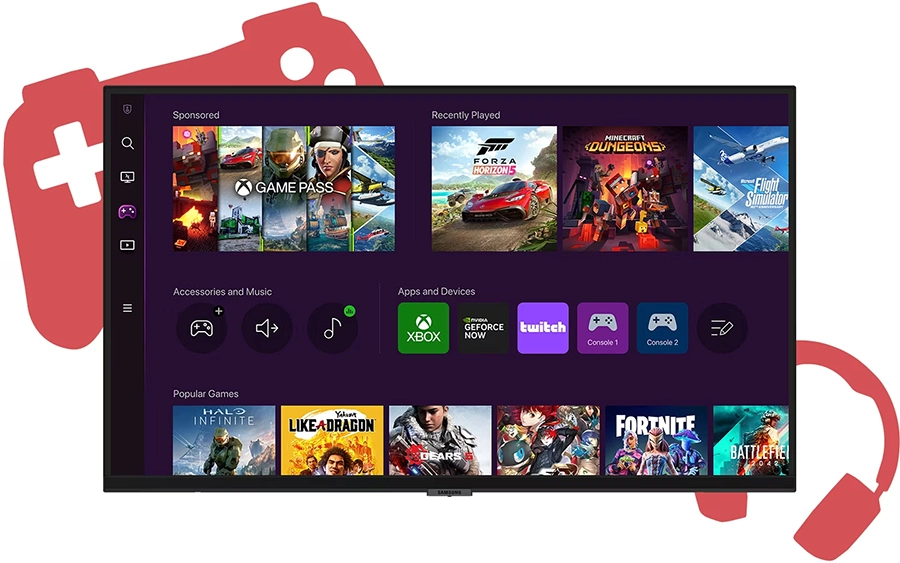 Tận hưởng trải nghiệm chơi game tối thượng với ứng dụng Gaming Hub trên TV Samsung. Đắm chìm vào những tựa game đình đám nhất từ các đối tác phát trực tuyến hàng đầu, mà không cần kết nối máy tính hay máy chơi game. Khám phá các tựa game mới nhất hay tựa game kinh điển ngay trong một ứng dụng duy nhất.